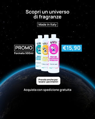 Il nostro profumo concentrato per bucato è formulato con oli e molecole aromatiche ad alta intensità. Prima di ogni utilizzo, agita bene la bottiglia: in questo modo gli ingredienti si miscelano alla perfezione, garantendo una diffusione omogenea del profumo su ogni fibra del tessuto.